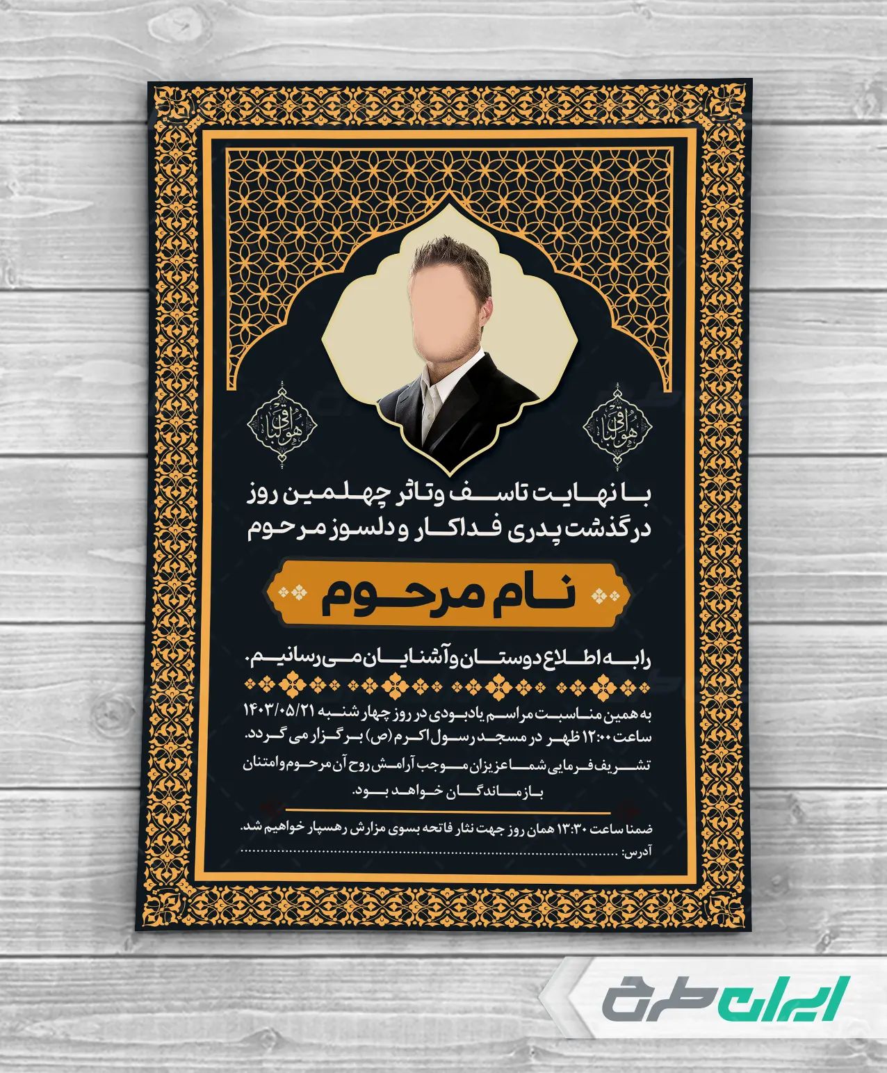 طرح اعلامیه ترحیم شامل: