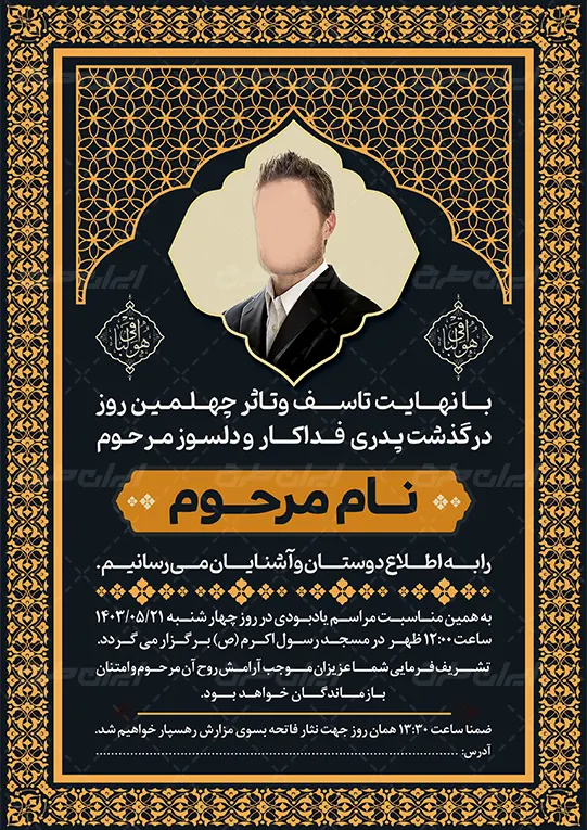 - طراحی اعلامیه ترحیم با استفاده از المنت های مذهبی