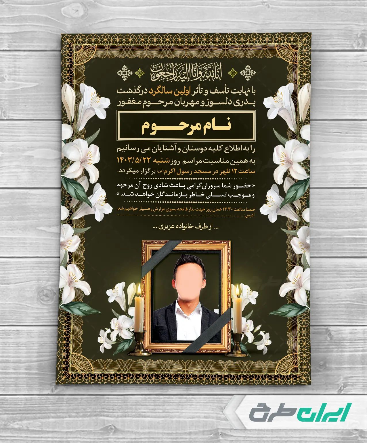 ایران طرح نمونه هایی از طرح اعلامیه ترحیم را جهت استفاده کاربران طراحی کرده است.