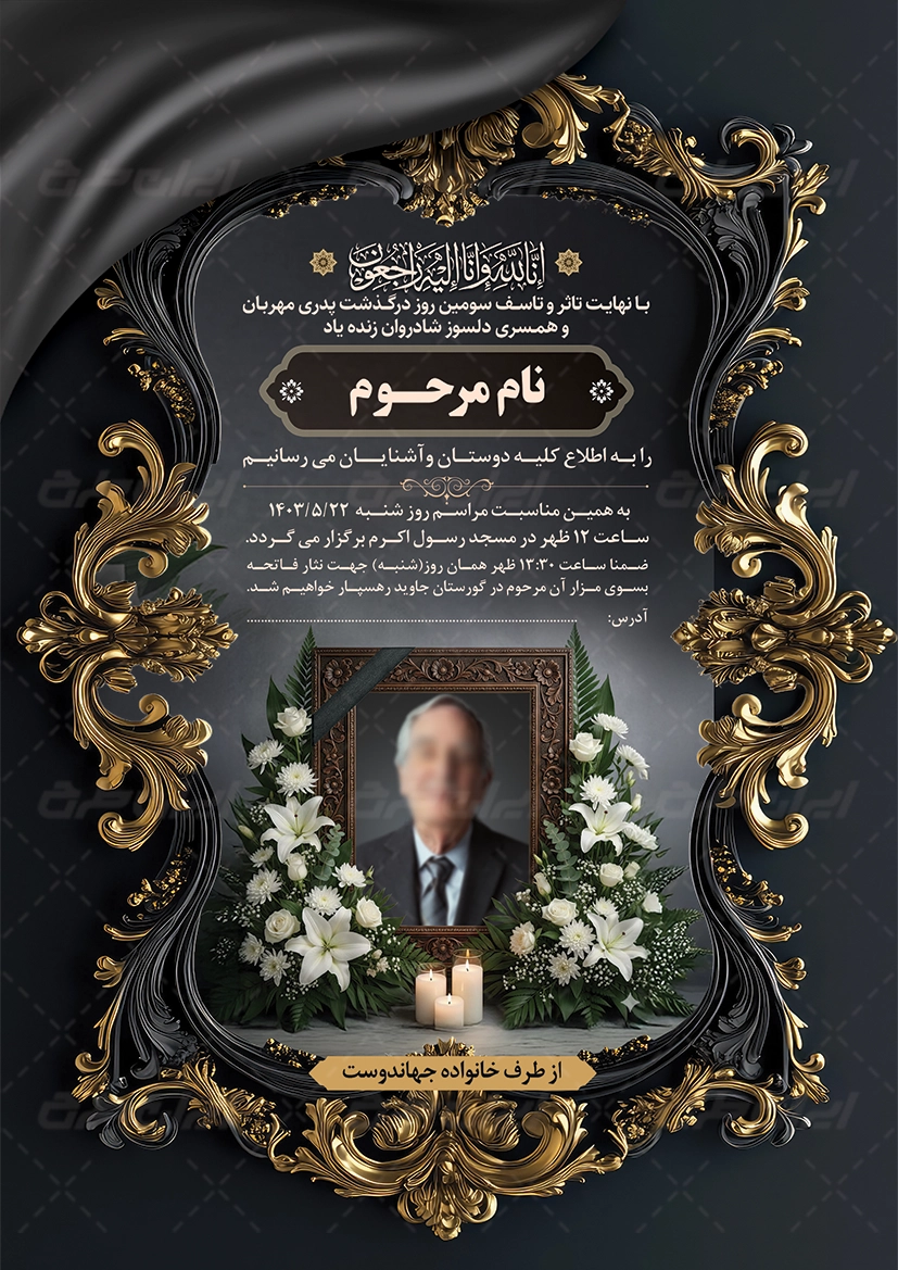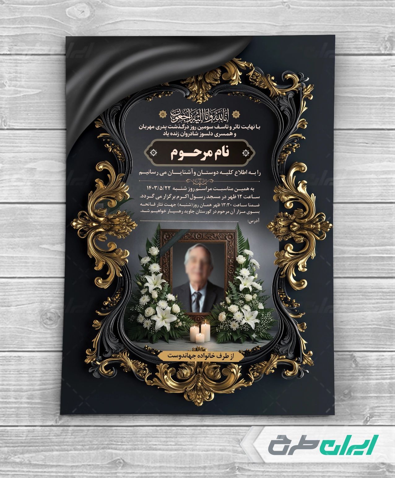 ایران طرح نمونه هایی از طرح اعلامیه ترحیم را جهت استفاده کاربران طراحی کرده است.