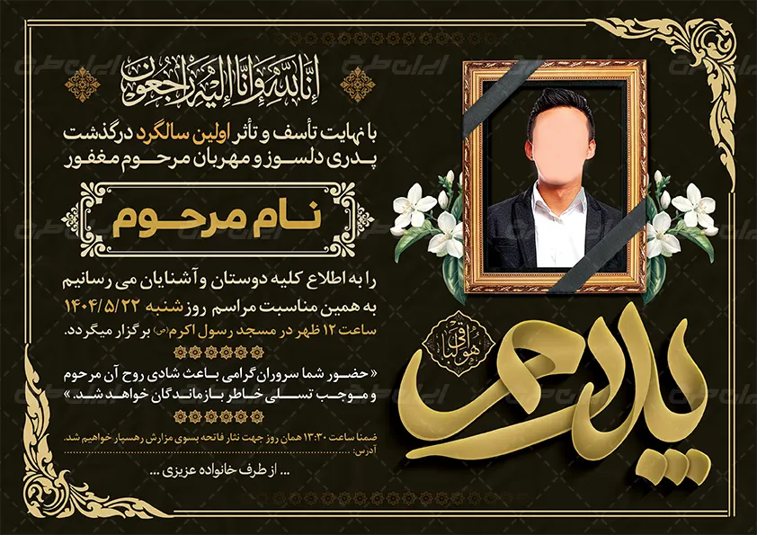 - طراحی اعلامیه ترحیم با استفاده از المنت های مذهبی