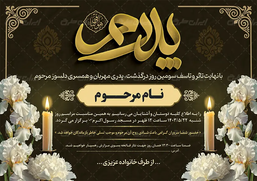 ایران طرح نمونه هایی از طرح اعلامیه ترحیم را جهت استفاده کاربران طراحی کرده است.