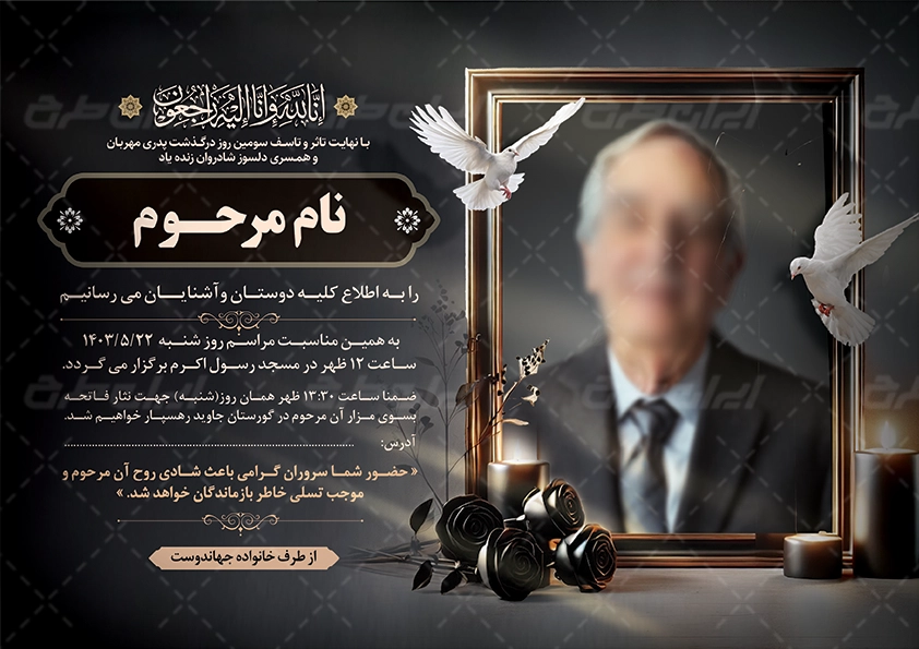 ایران طرح نمونه هایی از طرح اعلامیه ترحیم را جهت استفاده کاربران طراحی کرده است.