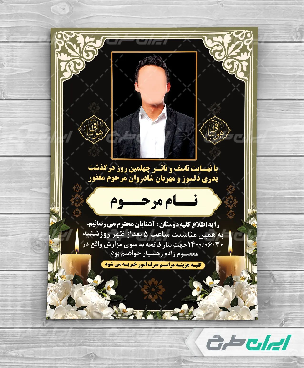 ایران طرح نمونه هایی از طرح اعلامیه ترحیم را جهت استفاده کاربران طراحی کرده است.