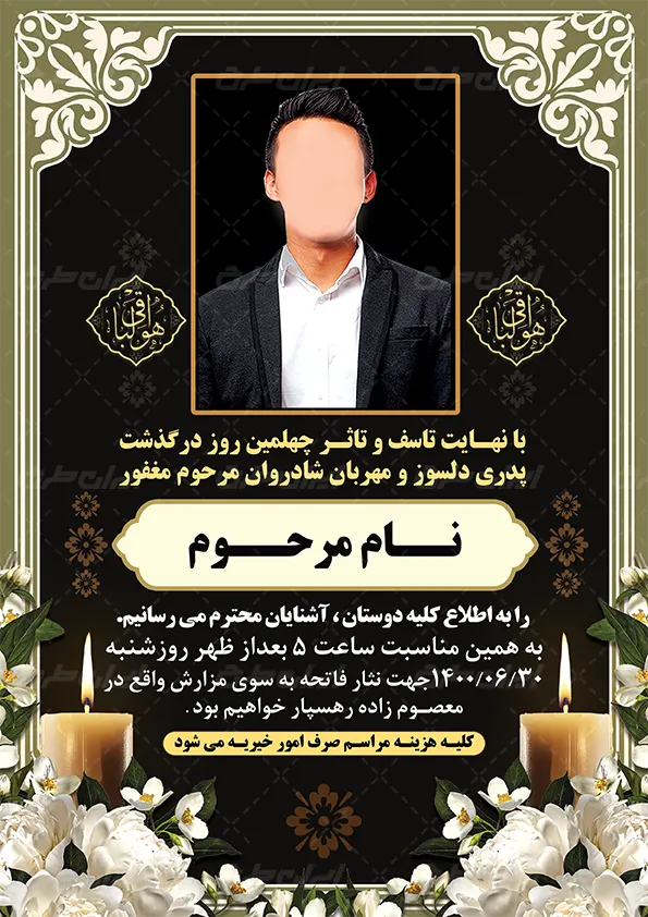 - طراحی اعلامیه ترحیم با استفاده از المنت های مذهبی