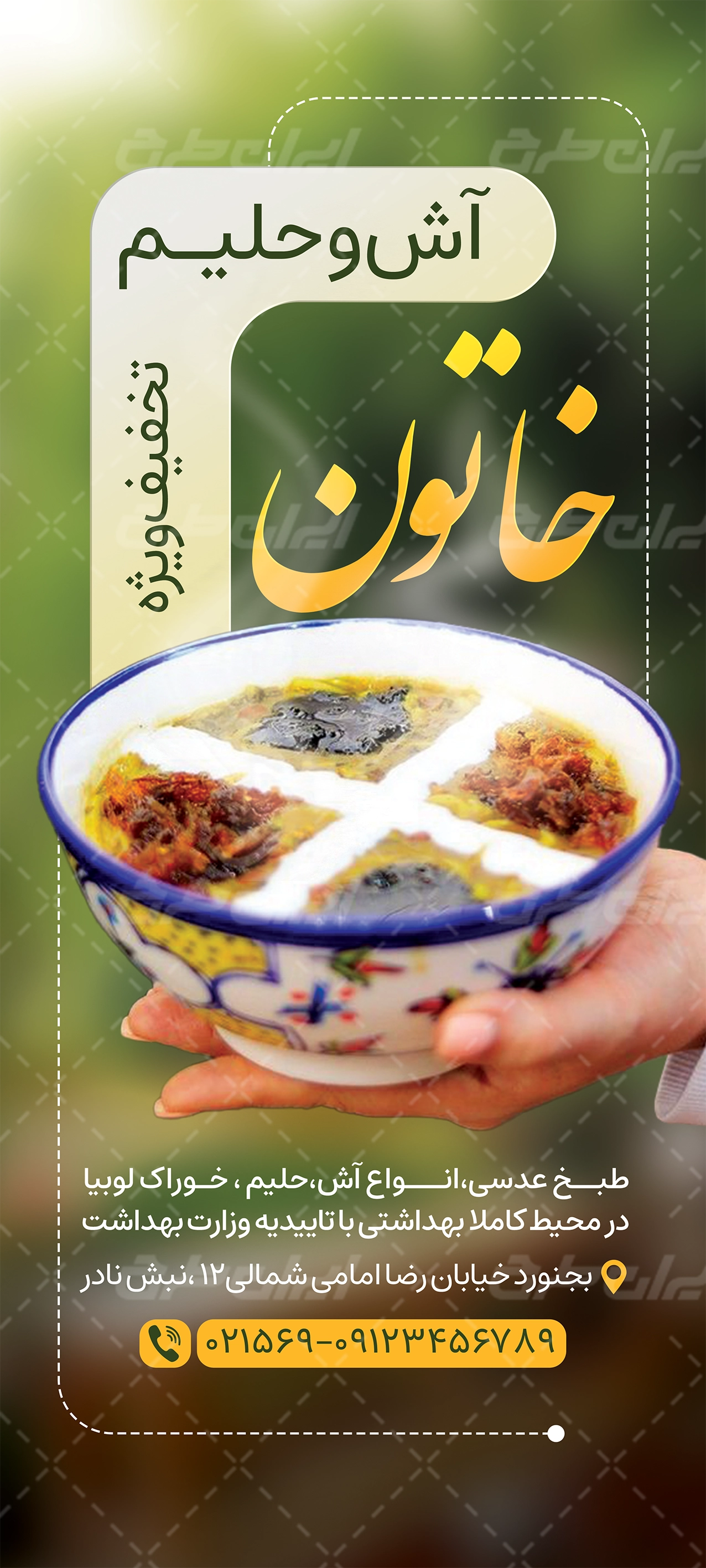 مشخصات فنی طرح بنر لایه باز آش و حلیم