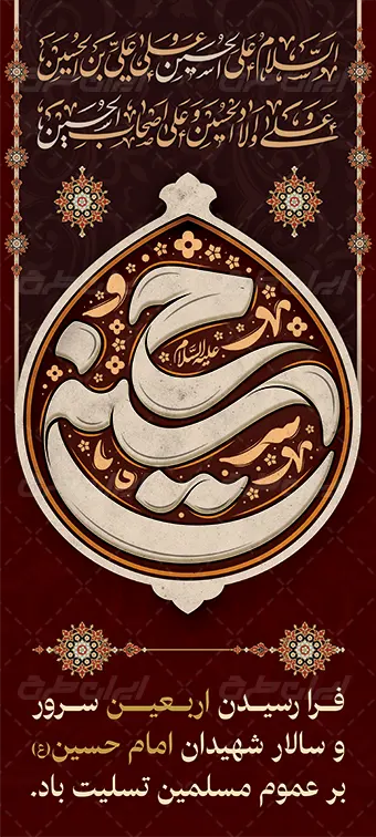 تذهیب و متن تسلیت اربعین حسینی می باشد که توسط طراحان ایران طرح در نرم افزار فتوشاپ طراحی شده است.