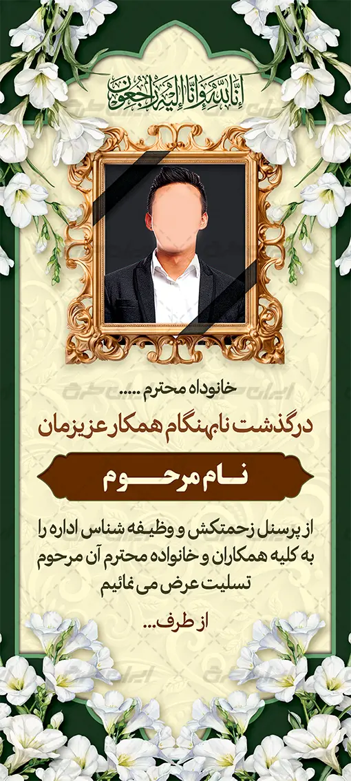 طرح بنر تسلیت ، توسط تیم حرفه ای ایران طرح جهت استفاده کاربران سایت طراحی و به صورت لایه باز در دسترس کاربران قرار گرفته است.