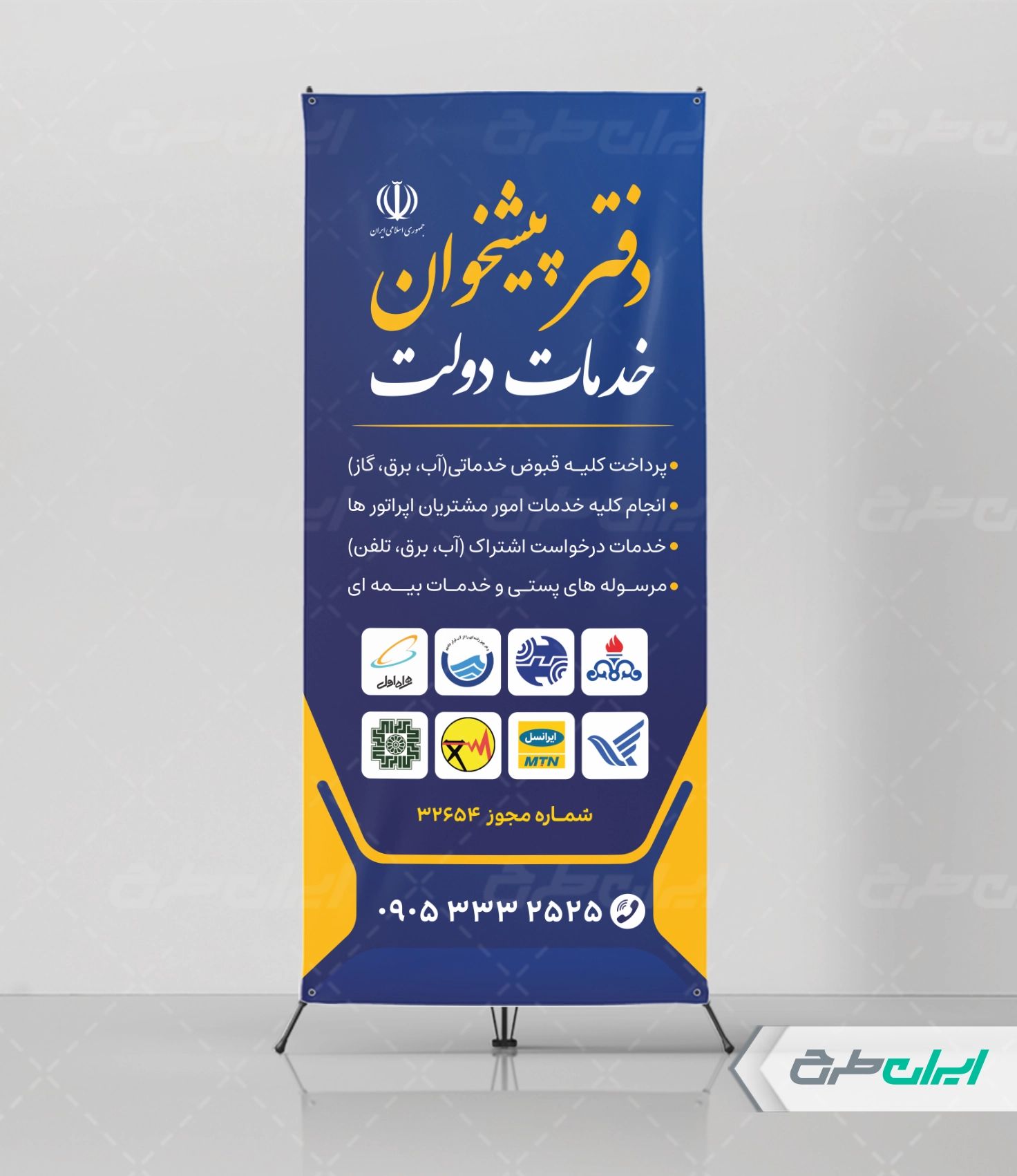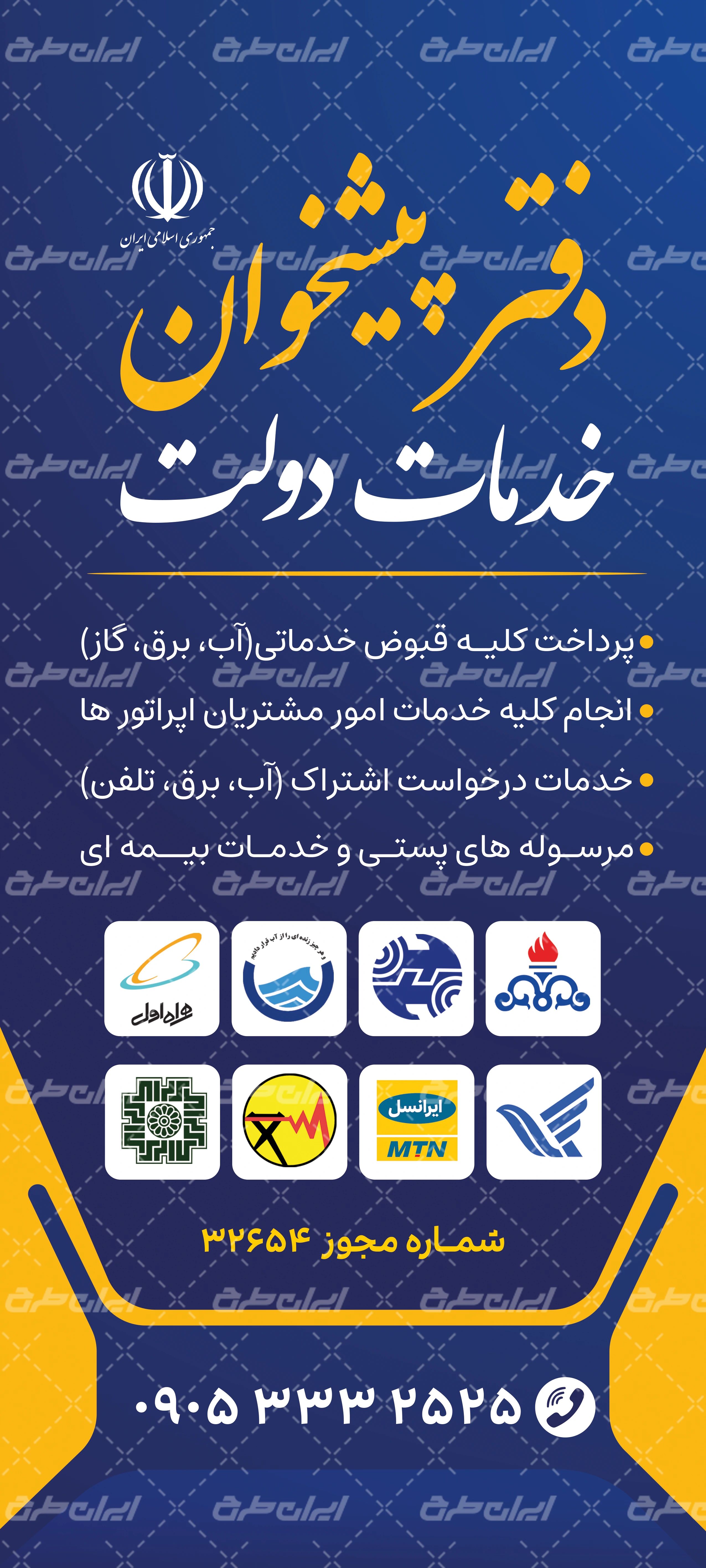 تیم ایران طرح طرح بنر دفتر پیشخوان را برای استفاده روی سردر این دفاتر طراحی نموده است.