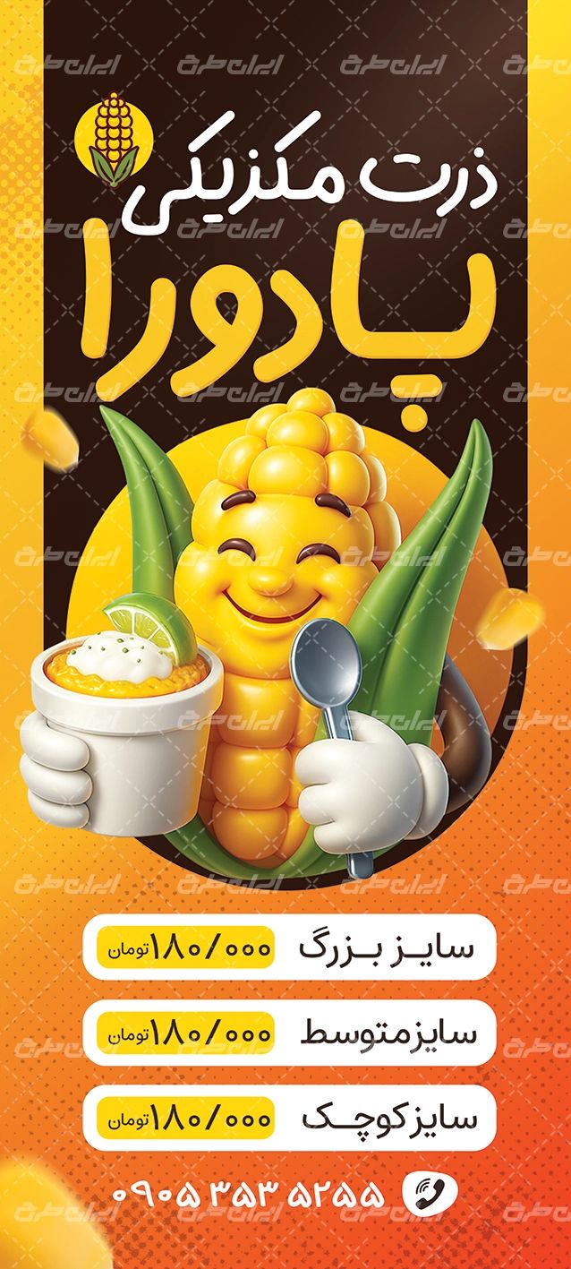 طرح بنر ذرت مکزیکی جهت استفاده در سردر این دسته از مشاغل توسط طراحان ایران طرح طراحی، و در دسترس کاربران سایت قرار گرفته است.