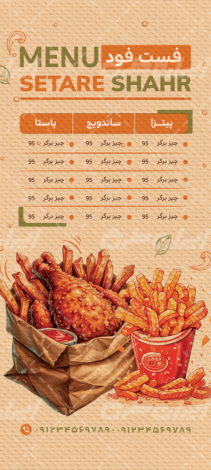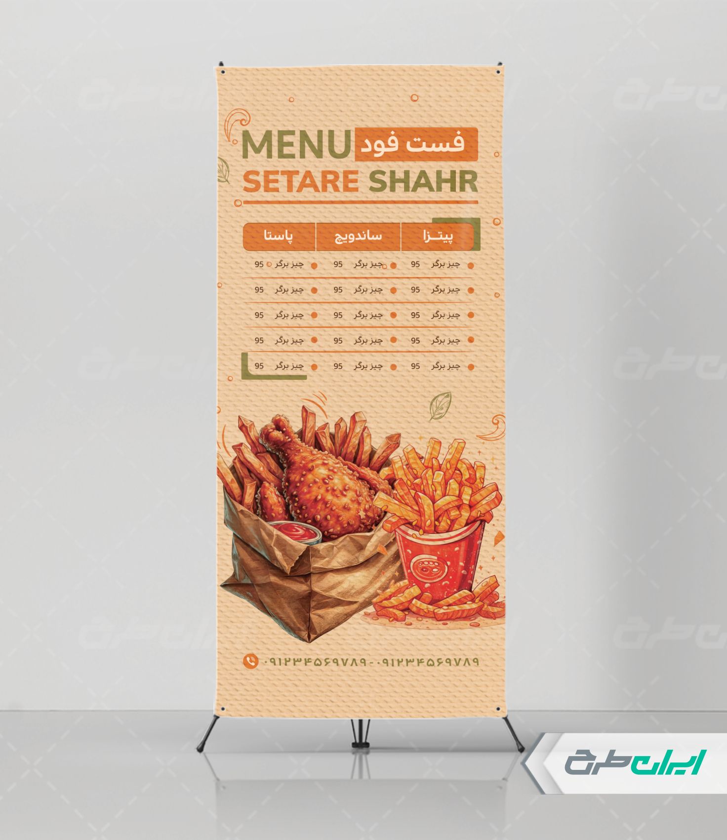 مشخصات فنی طرح لایه باز بنر فست فودی و پیتزا فروشی