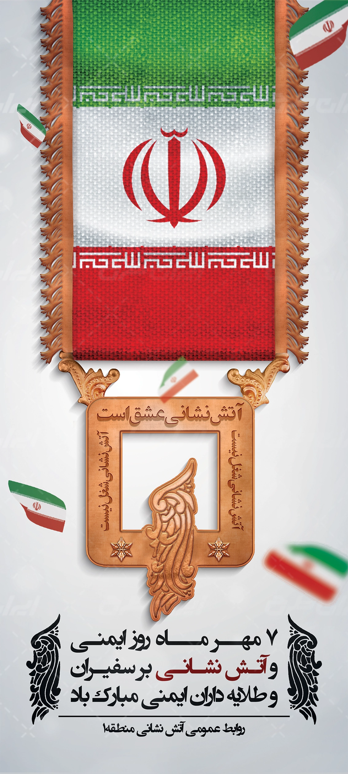 تصویر پرچم ایران و متن تبریک روز آتش نشانی می باشد که توسط تیم ایران طرح طراحی شده است.