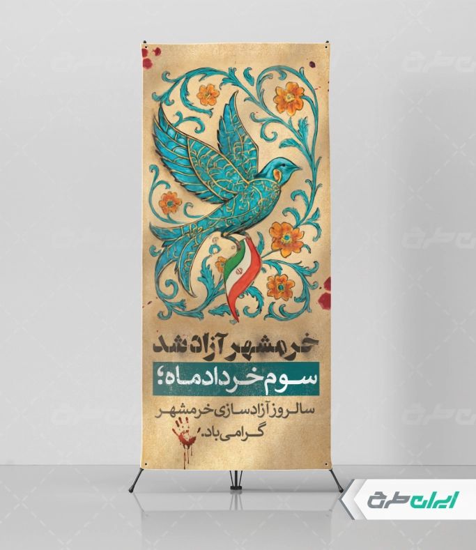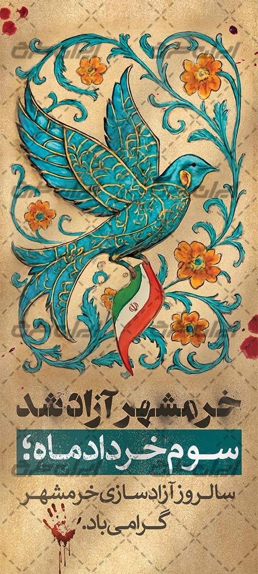 تصویر پرنده و متن گرامیداشت روز خرمشهر می باشد که توسط تیم ایران طرح طراحی شده است.
