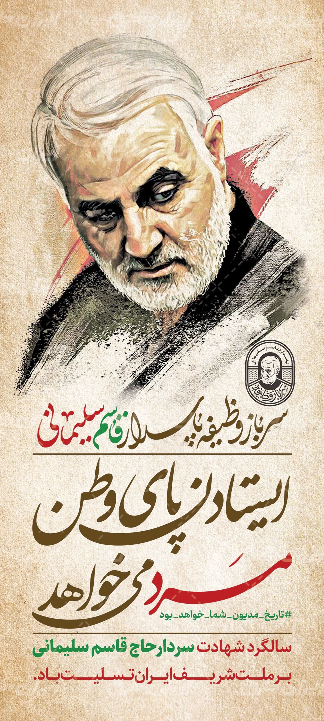 طرح بنر سالگرد شهادت سردار حاج قاسم سلیمانی شامل: