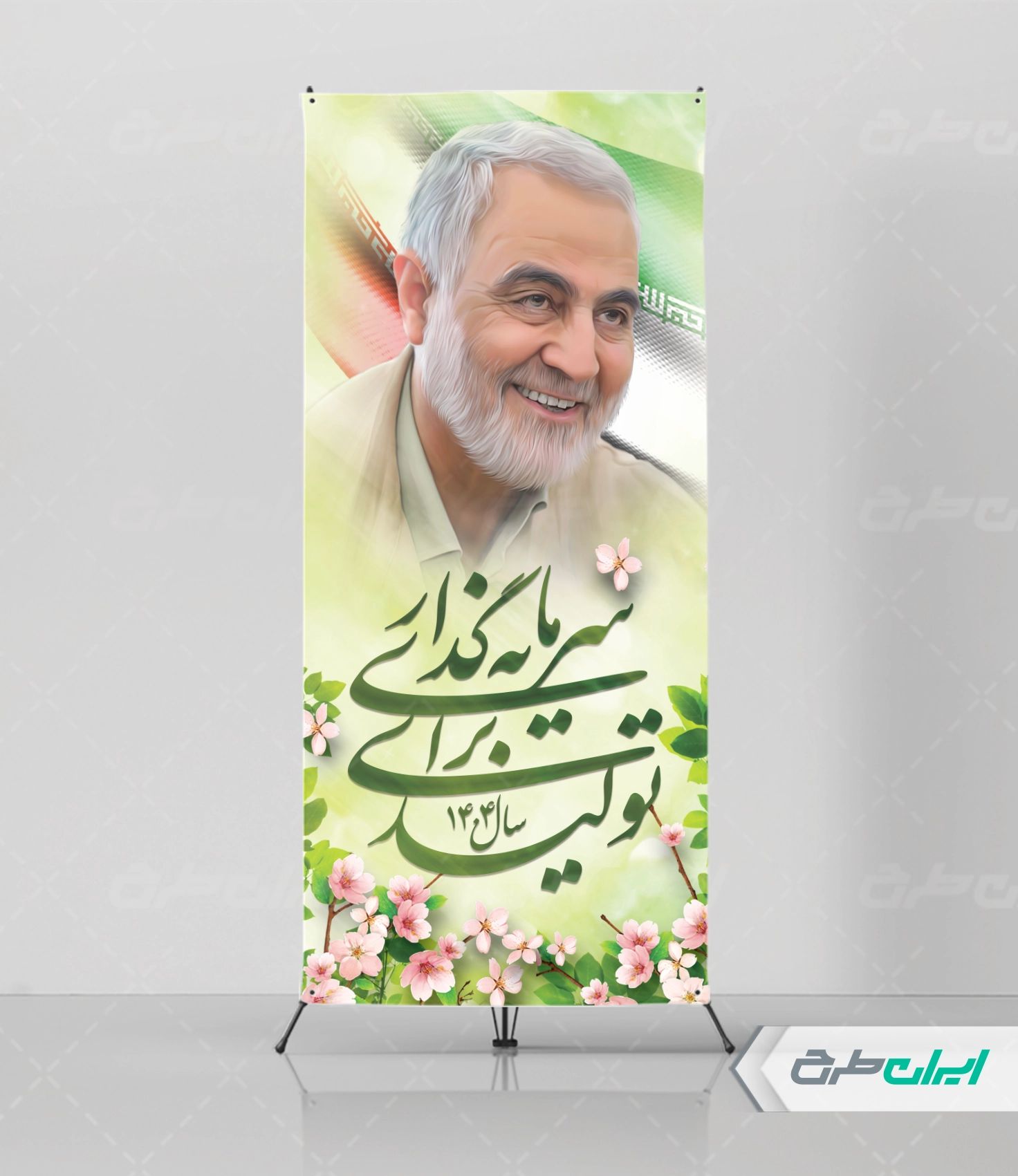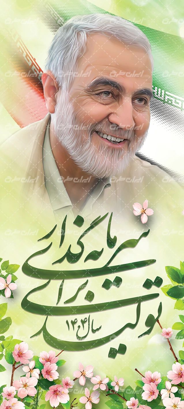 طرح استند شعار سال با تصویر سردار سلیمانی و بک گراند سبز