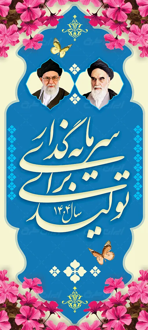 تصویر رهبری و متن شعار سال سرمایه گذاری برای تولید، که توسط تیم ایران طرح طراحی شده است.