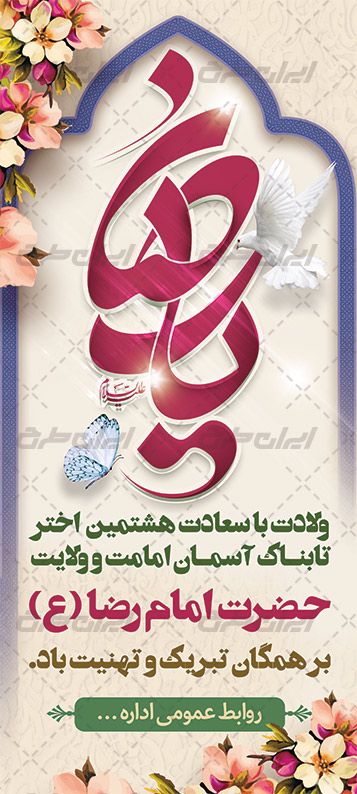 بنر ولادت امام رضا (ع)، توسط تیم حرفه ای ایران طرح جهت استفاده کاربران سایت طراحی و به صورت لایه باز در دسترس کاربران قرار گرفته است.