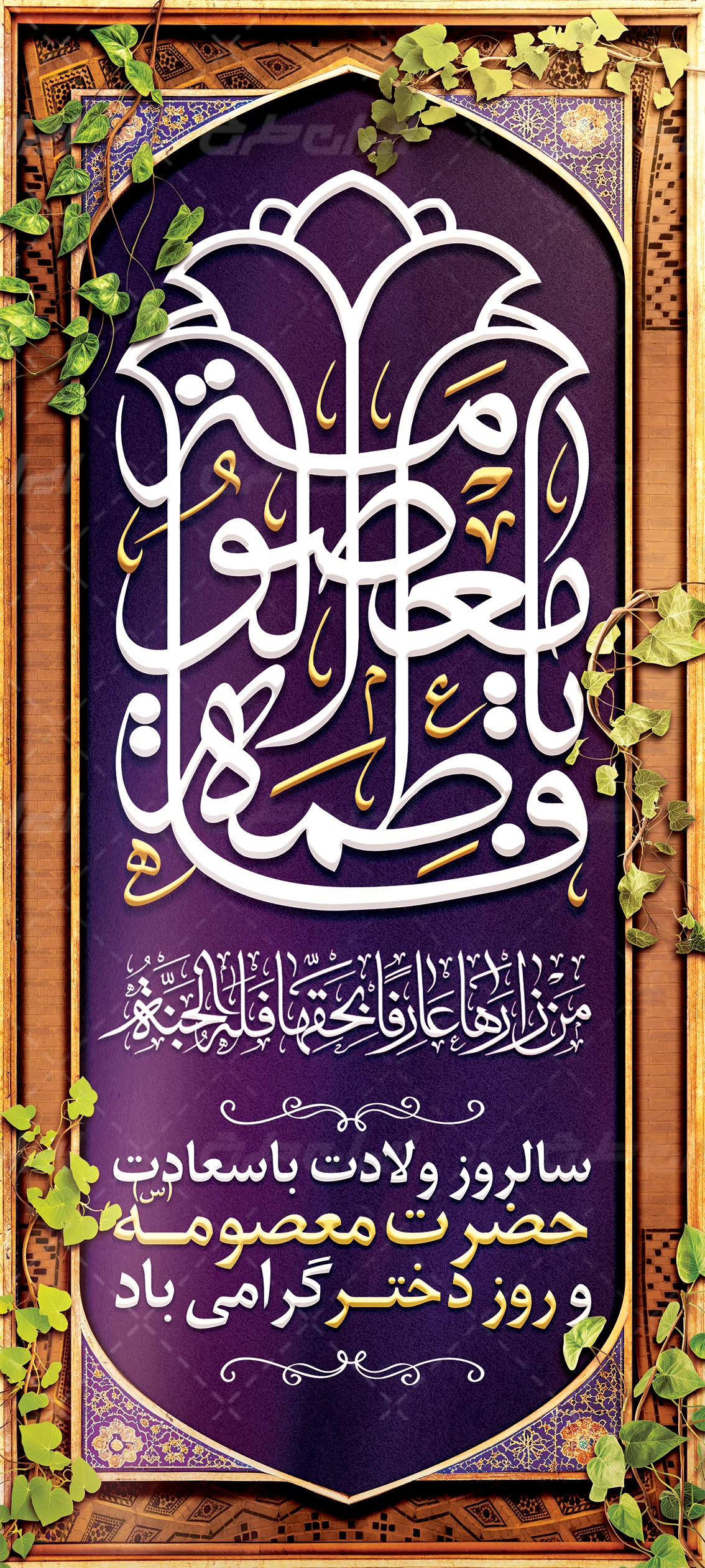 تذهیب و متن گرامیداشت ولادت حضرت معصومه (س) و روز دختر می باشد که توسط تیم ایران طرح طراحی شده است.