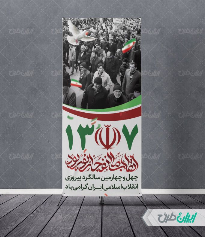 - طراحی بنر با استفاده از تصویر پرچم ایران و راهپیمایی مناسب در طرح بنر دهه فجر