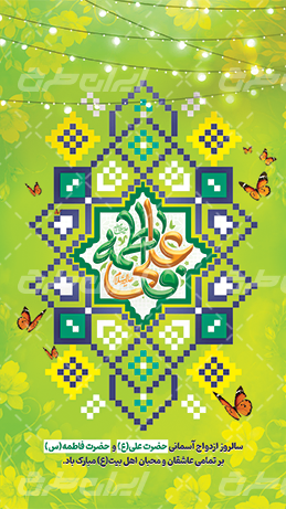 تایپوگرافی علی و فاطمه و تذهیب و تبریک این روز می باشد که توسط طراحان پارس گرافیک در نرم افزار فتوشاپ طراحی شده است.