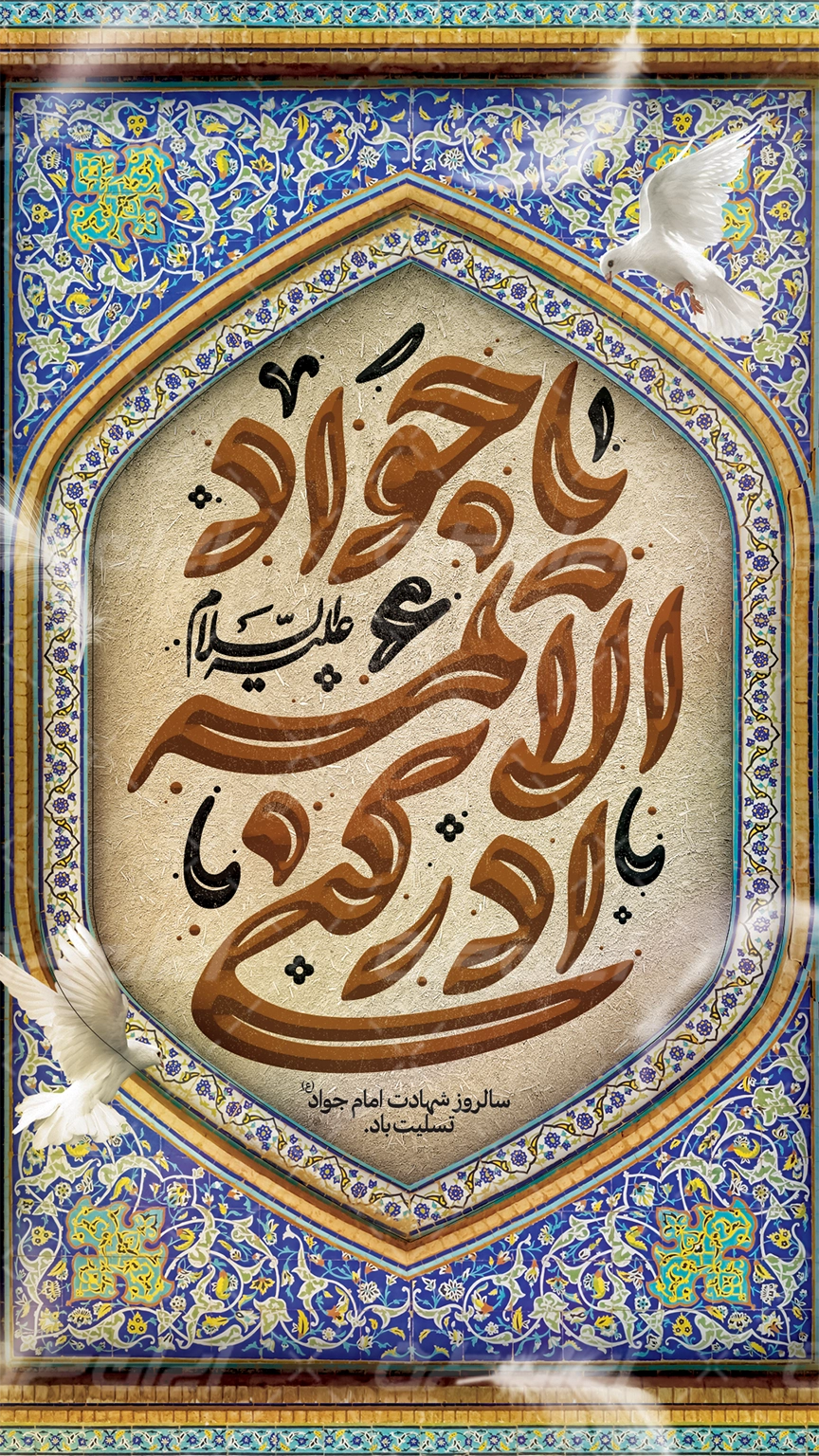تایپوگرافی یا جواد الائمه ادرکنی و متن سالروز شهادت ایشان می باشد که توسط طراحان ایران طرح در نرم افزار فتوشاپ طراحی شده است.