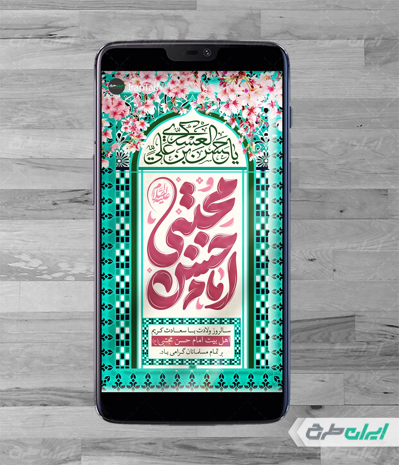 در نرم افزار فتوشاپ به صورت لایه باز طراحی شده و شامل تذهیب و طرح مرتبط با روز ولادت امام حسن مجتبی (ع) می باشد.