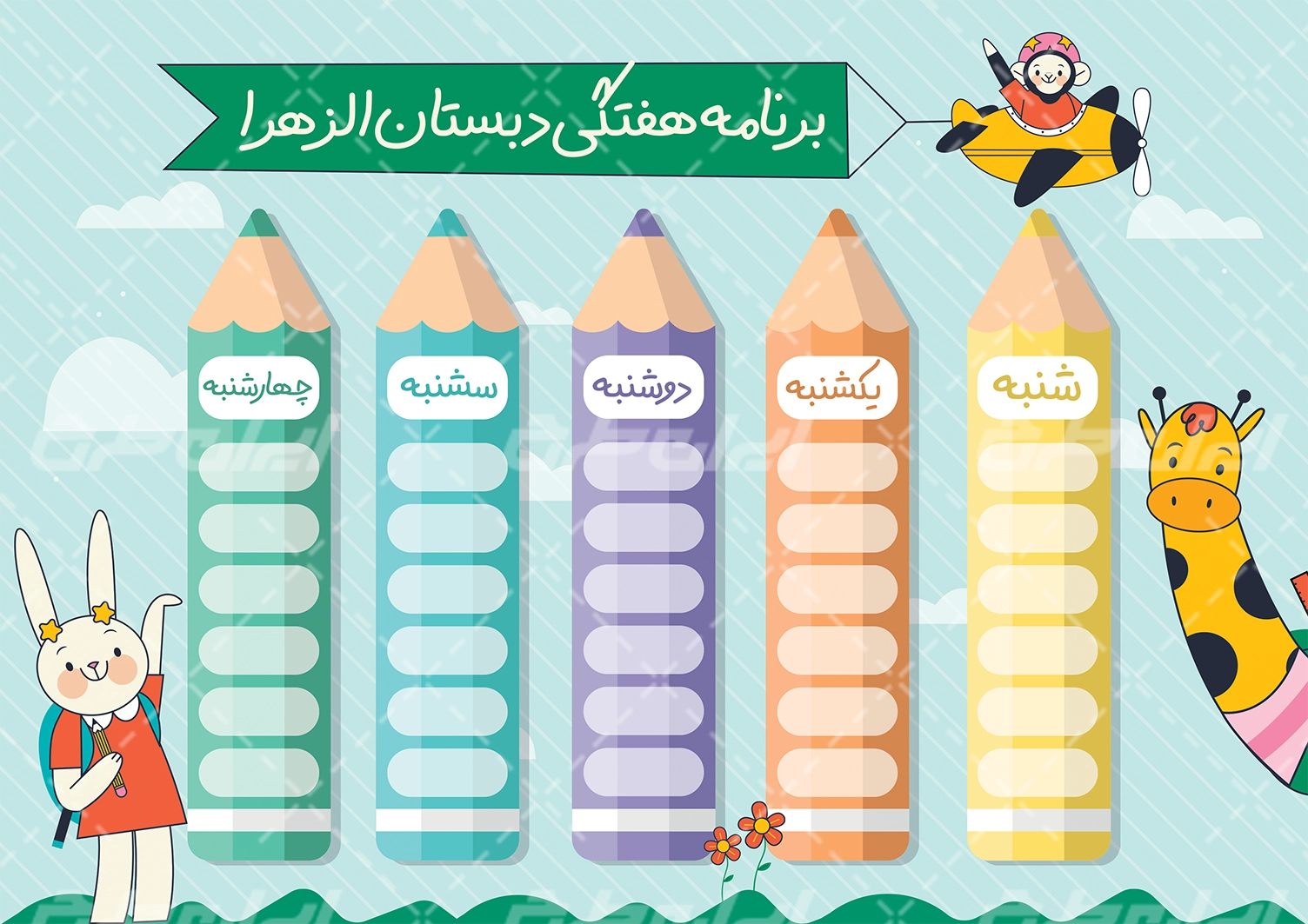 - طراحی ساده و فانتزی برنامه هفتگی با استفاده از وکتور های فانتزی و باکیفیت