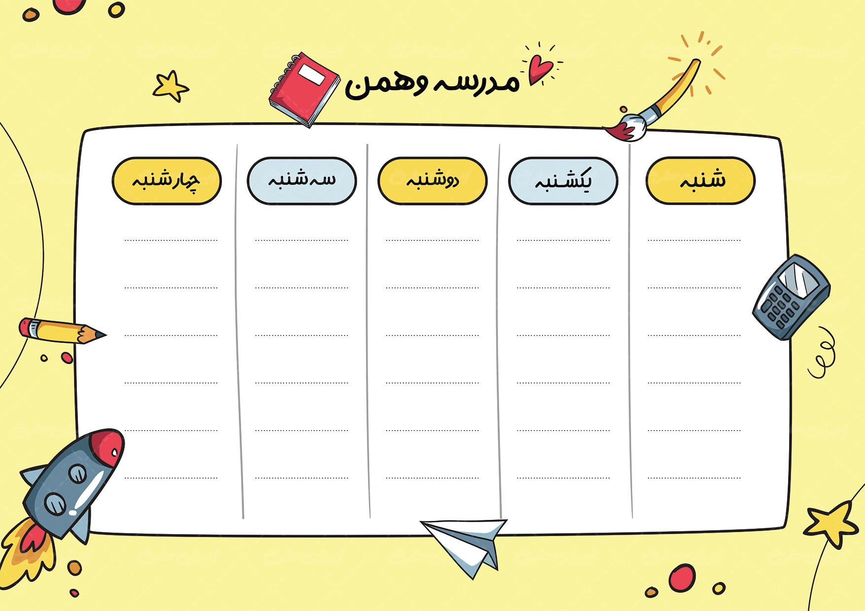 طرح برنامه هفتگی، توسط طراحان مجرب ایران طرح طراحی و در اختیار کاربران سایت قرار گرفته است.