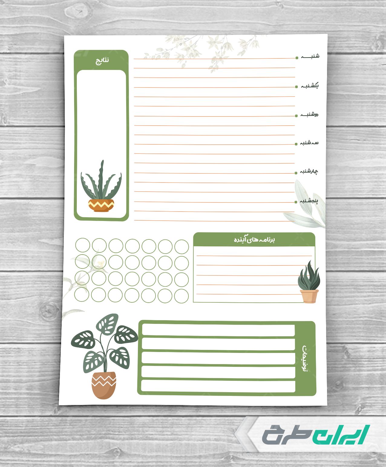 طرح برنامه هفتگی، توسط طراحان مجرب ایران طرح طراحی و در اختیار کاربران سایت قرار گرفته است.