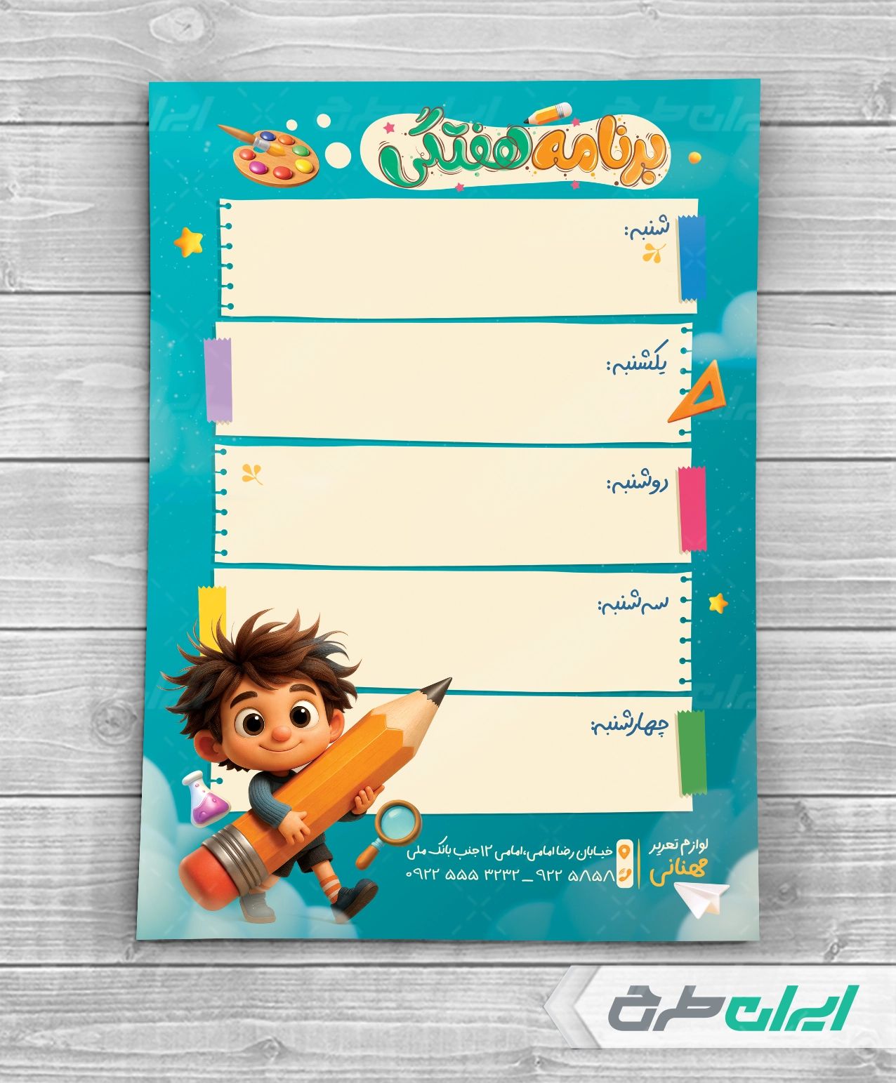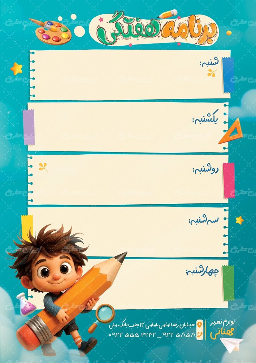 طرح برنامه هفتگی، توسط طراحان مجرب ایران طرح طراحی و در اختیار کاربران سایت قرار گرفته است.