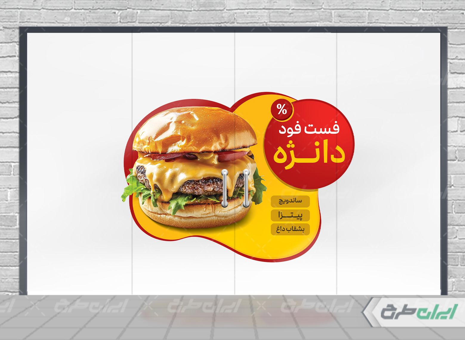 طرح برچسب روی شیشه فست فود