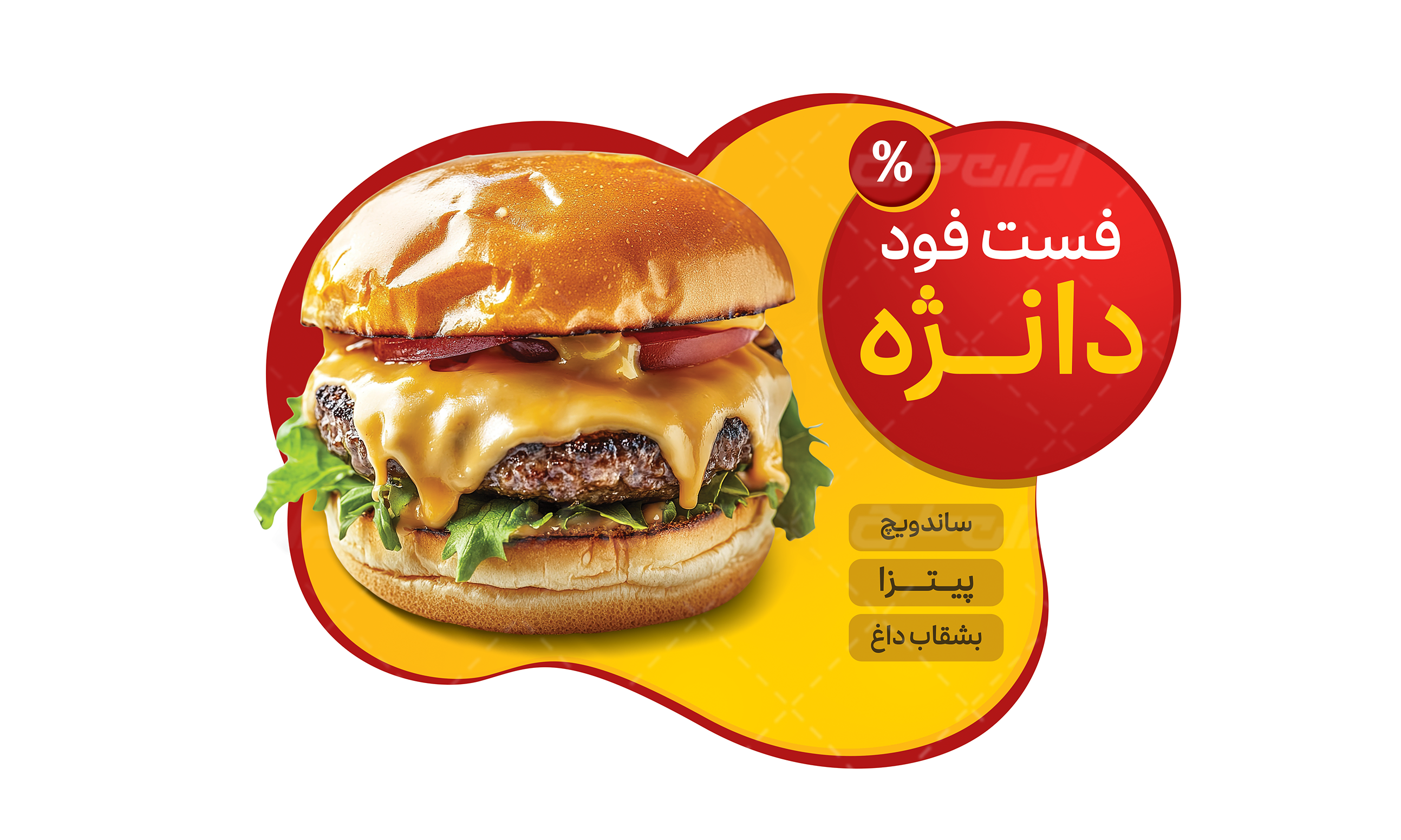 طرح استیکر روی شیشه فست فود ، جهت استفاده این دسته از مشاغل توسط طراحان ایران طرح طراحی شده است.