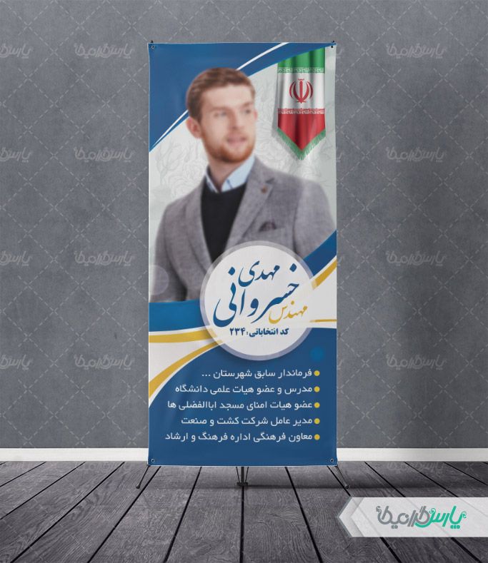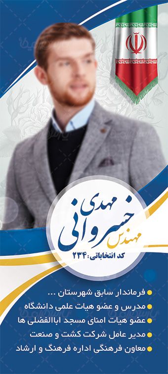 بنر لایه باز نامزد ایستاده و استندی نامزد انتخابات شورای شهر ، مجلس و ریاست جمهوری و مجلس خبرگان