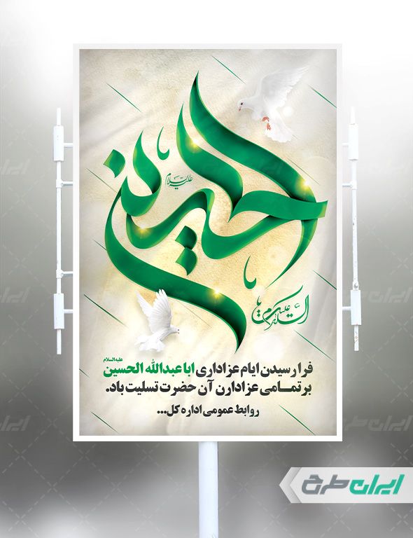 طرح بنر استند شهری محرم شامل: تایپوگرافی الحسین و متن تسلیت ایام محرم می باشد که توسط طراحان ایران طرح در نرم افزار فتوشاپ طراحی شده است. به دلیل لایه باز (قابل ویرایش توسط کاربران در نرم افزار فتوشاپ Adobe Photoshop) بودن و کیفیت بالای عناصر و المان های استفاده شده در طرح، می توانید علاوه بر چاپ بنر محرم(به صورت عمودی)، در استوری اینستاگرام و سایر پلت فرم های فضای مجازی جهت عرض تسلیت و ابراز همدردی با امت بزرگ اسلامی استفاده نمایید.