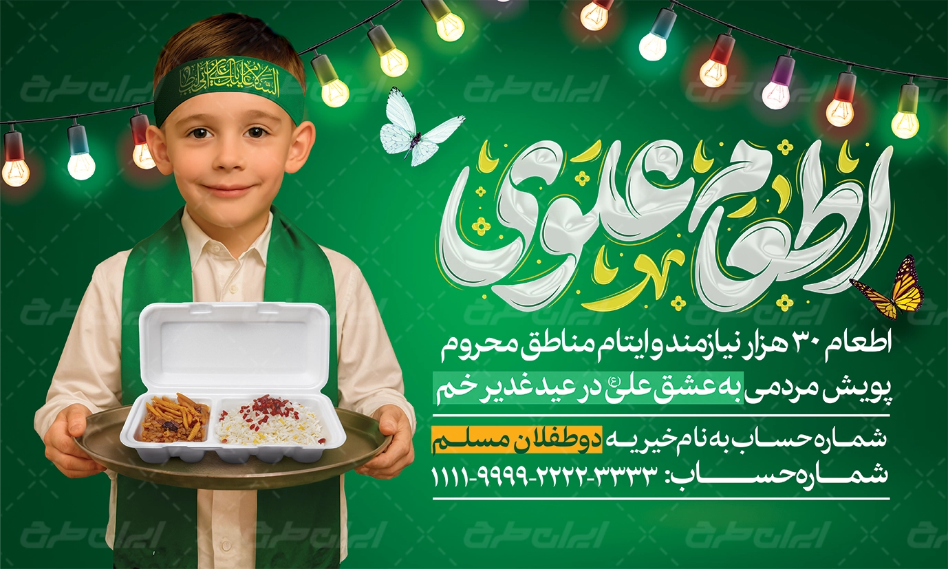 تایپوگرافی اطعام علوی و متن تبریک عید غدیر خم می باشد که توسط طراحان ایران طرح در نرم افزار فتوشاپ طراحی شده است.