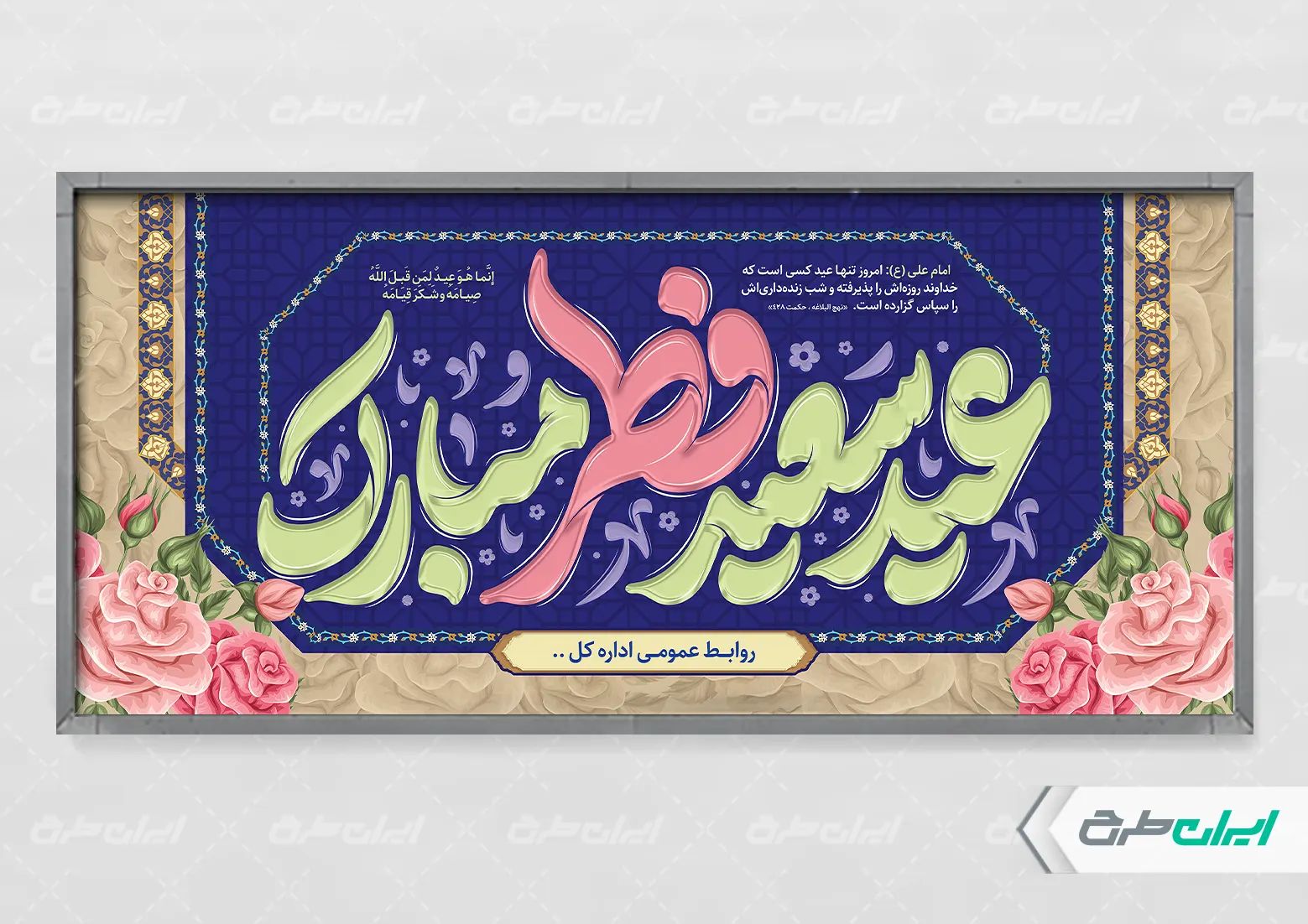 بنر عید فطر، توسط تیم حرفه ای ایران طرح جهت استفاده کاربران سایت طراحی و به صورت لایه باز در دسترس کاربران قرار گرفته است.