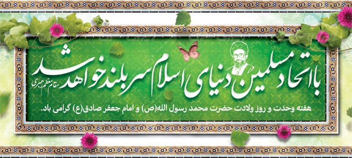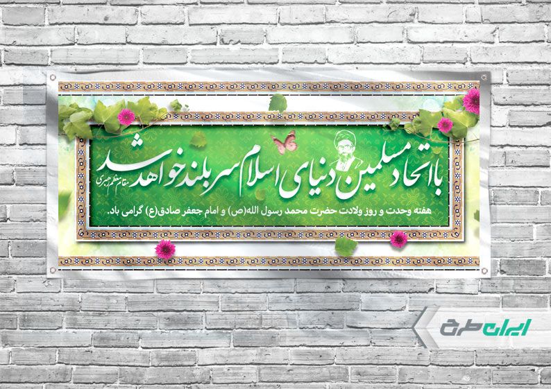 طرح بنر افقی میلاد حضرت محمد (ص) و هفته وحدت psd