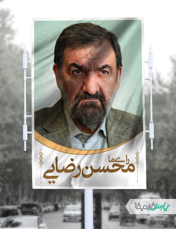 در طرح بنر انتخاباتی از تصویر نامزد انتخابات ریاست جمهوری جناب آقای محسن رضائی استفاده شده است