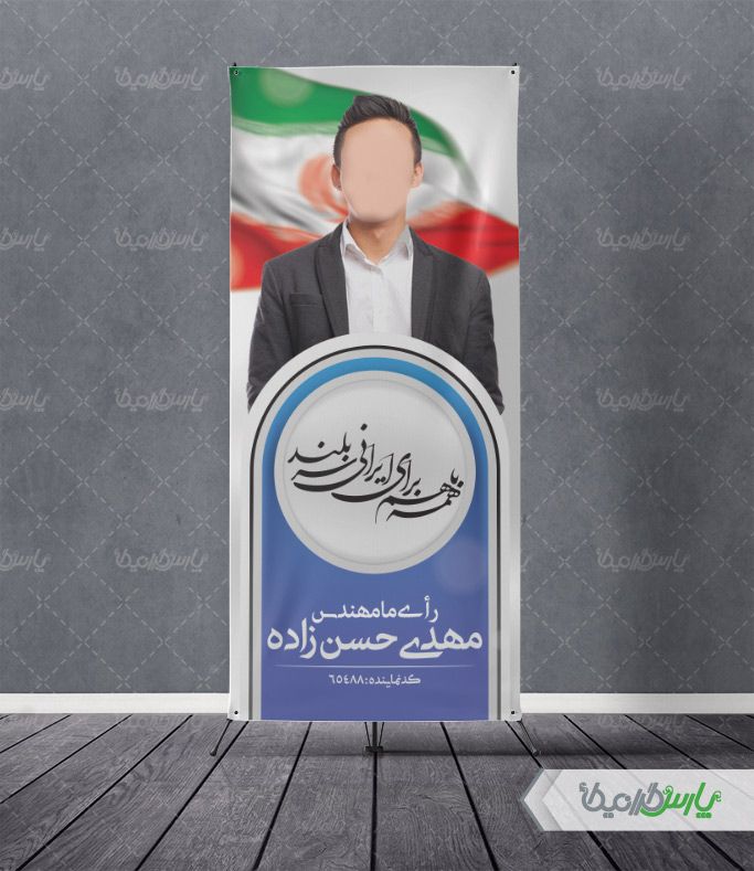 بنر لایه باز نامزد ایستاده و استندی نامزد انتخابات شورای شهر ، مجلس و ریاست جمهوری و مجلس خبرگان
