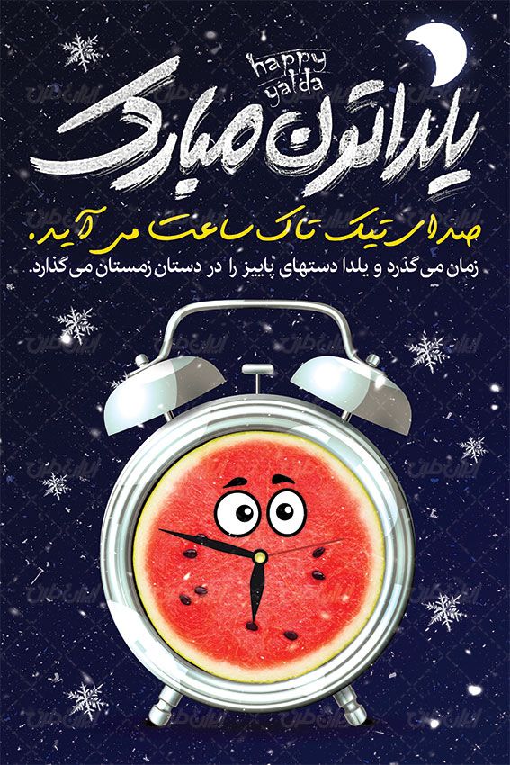 - طراحی بنر با استفاده از تصویر ساعت رو میزی طرح هندوانه در طرح بنر شب یلدا