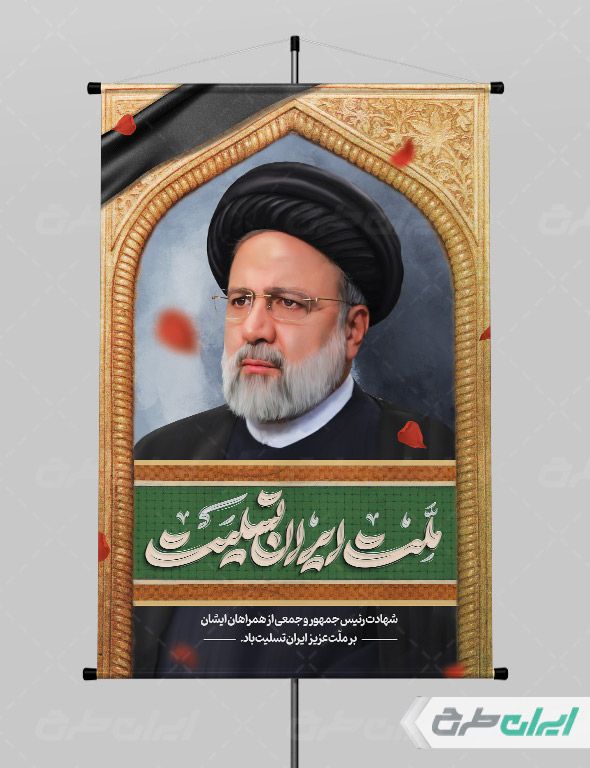 بنر تسلیت شهادت سید ابراهیم رئیسی، توسط تیم حرفه ای ایران طرح جهت استفاده کاربران سایت طراحی و به صورت لایه باز در دسترس کاربران قرار گرفته است.