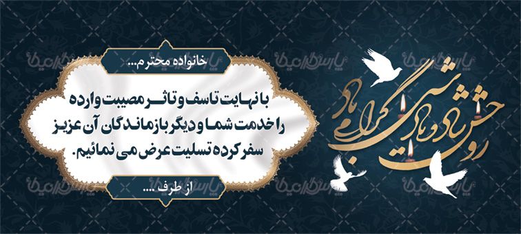 طرح بنر تسلیت، توسط تیم حرفه ای پارس گرافیک جهت استفاده کاربران سایت طراحی و به صورت لایه باز در دسترس کاربران قرار گرفته است.