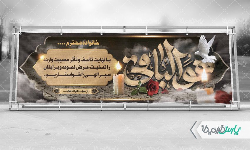 طرح بنر آگهی ترحیم شامل: تصویر شمع و کبوتر ، تایپوگرافی هوالباقی ، کادر مذهبی، ومتن همدردی با صاحب عزا می باشد که توسط تیم پارس گرافیک طراحی شده است. به دلیل استفاده از عناصر و المان های با کیفیت در طرح بنر تسلیت، می توانید علاوه بر چاپ بنر (به صورت افقی)، در استوری اینستاگرام یا دیگر پلت فرم های فضای مجازی جهت عرض تسلیت یا همدردی با صاحبان عزا استفاده نمایید. ضمنا به دلیل لایه باز بود طرح اطلاعیه ترحیم می توانید با استفاده از نرم افزار فتوشاپ تغییرات دلخواه خود را اعمال کنید.