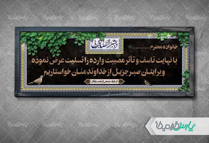 - طراحی بنر تسلیت با استفاده از المانهای با کیفیت مذهبی