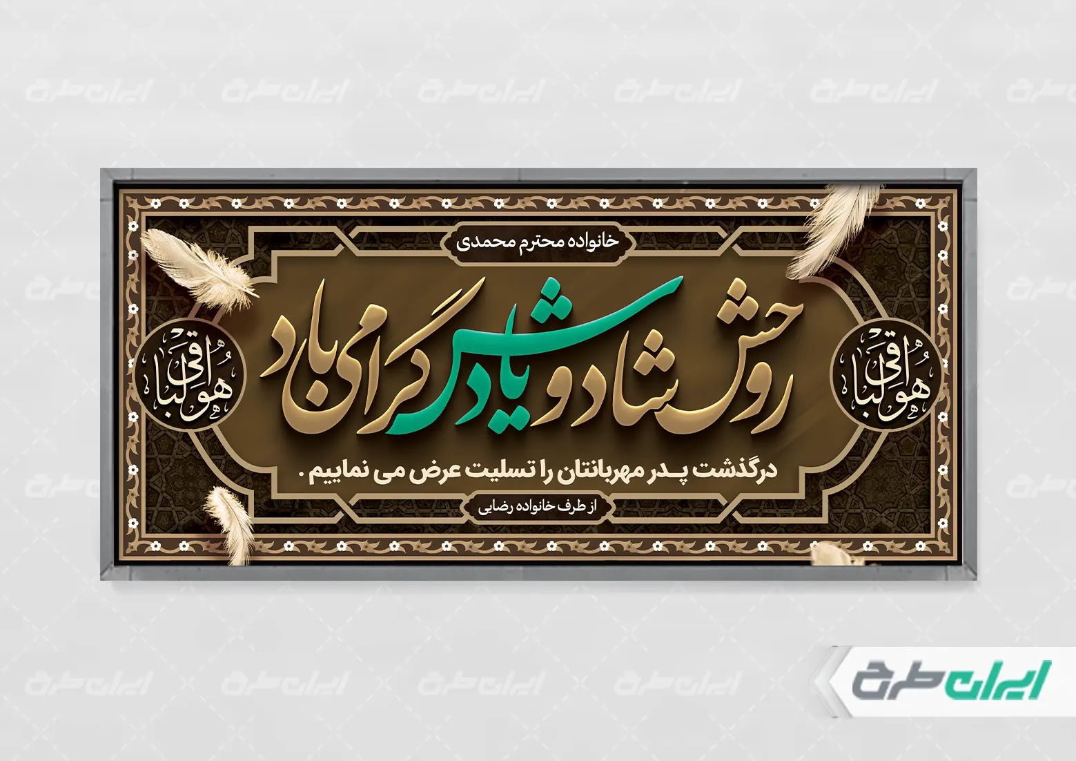 طرح بنر تسلیت ، توسط تیم حرفه ای ایران طرح جهت استفاده کاربران سایت طراحی و به صورت لایه باز در دسترس کاربران قرار گرفته است.