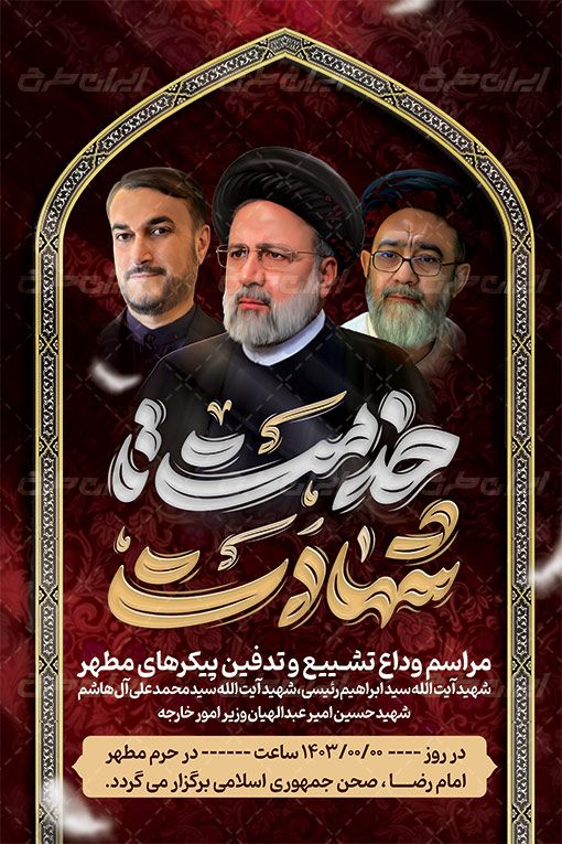 بنر تسلیت شهادت سید ابراهیم رئیسی، توسط تیم حرفه ای ایران طرح جهت استفاده کاربران سایت طراحی و به صورت لایه باز در دسترس کاربران قرار گرفته است.