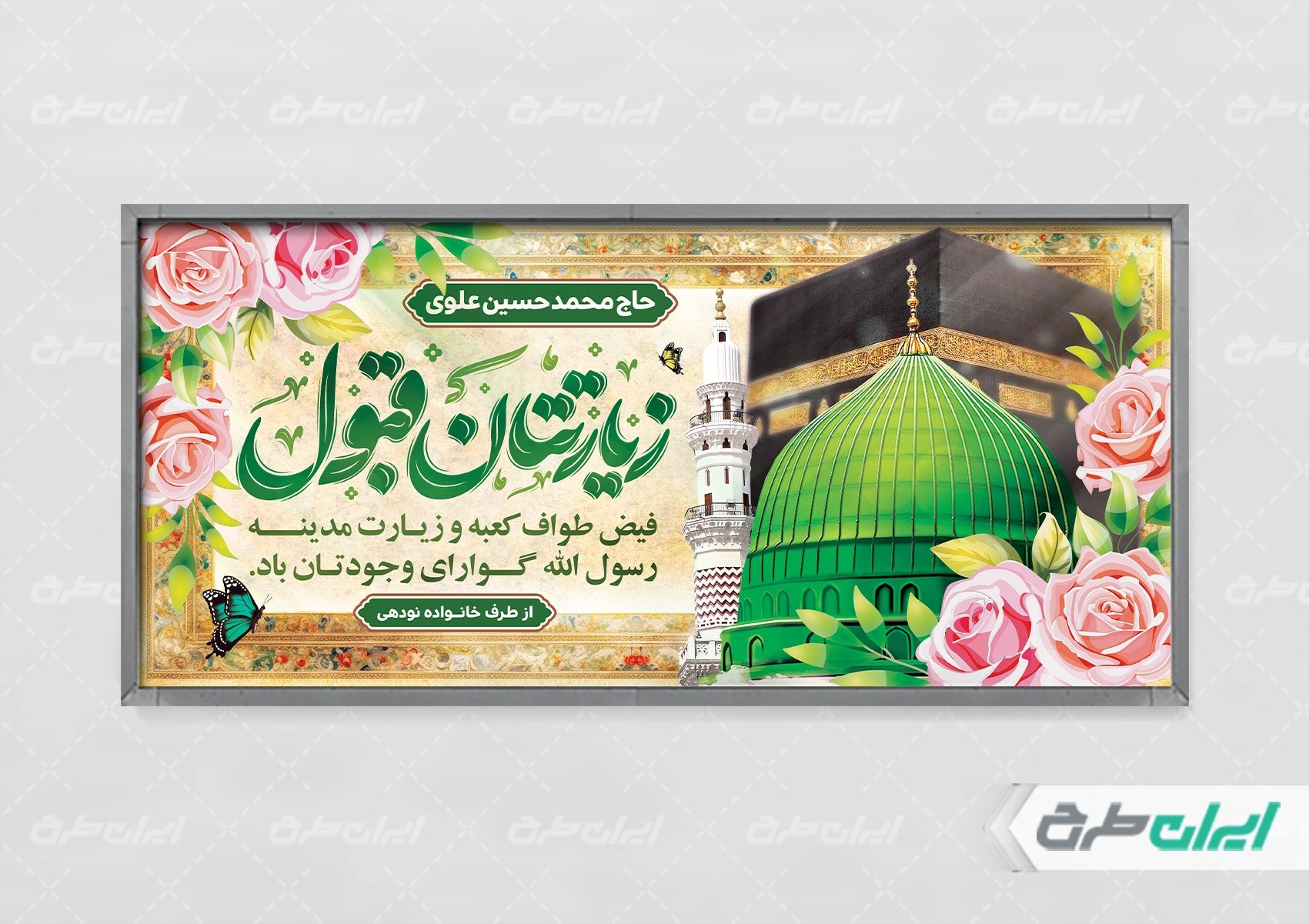 طرح بنر خیر مقدم حج با تایپوگرافی زیارتتان قبول