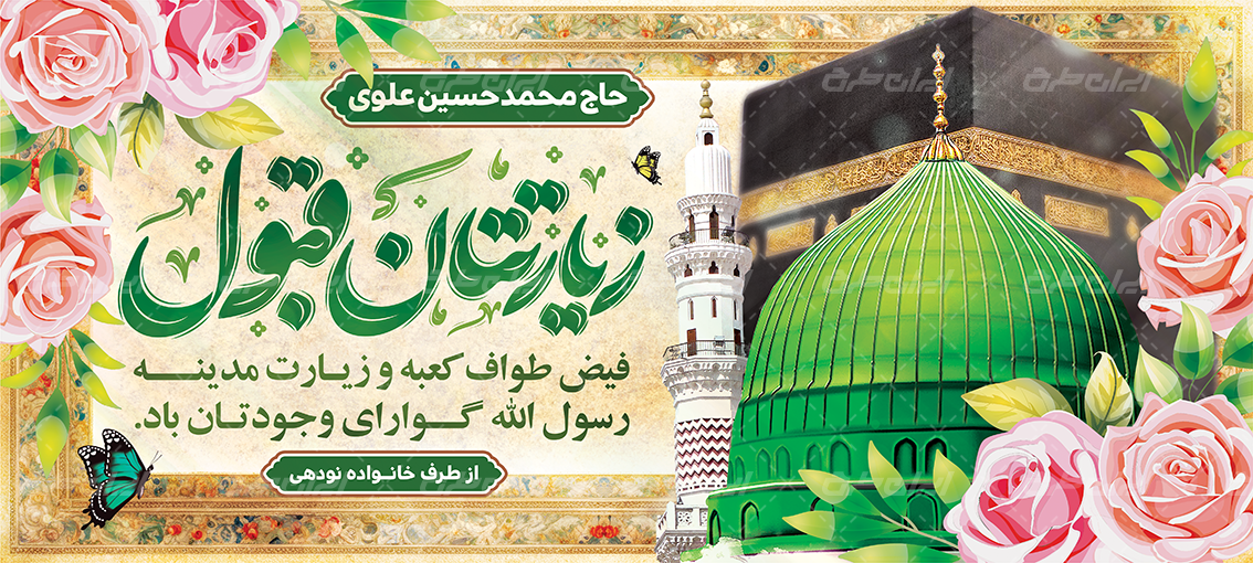 تایپوگرافی زیارتتان قبول، تصویر کعبه و طرح گل و متن خیر مقدم می باشد که توسط تیم ایران طرح طراحی شده است.