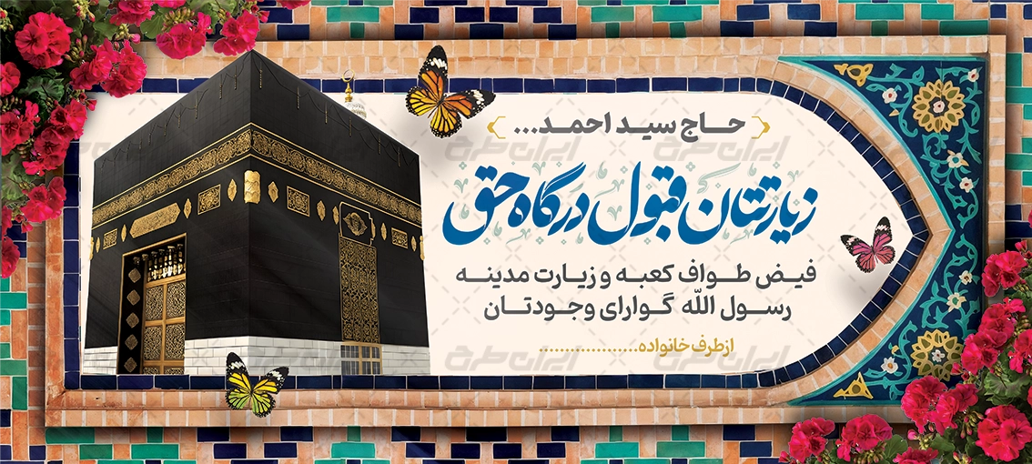 ضمنا به دلیل لایه باز بود طرح بنر خیر مقدم مکه می توانید با استفاده از نرم افزار فتوشاپ تغییرات دلخواه خود را اعمال کنید.