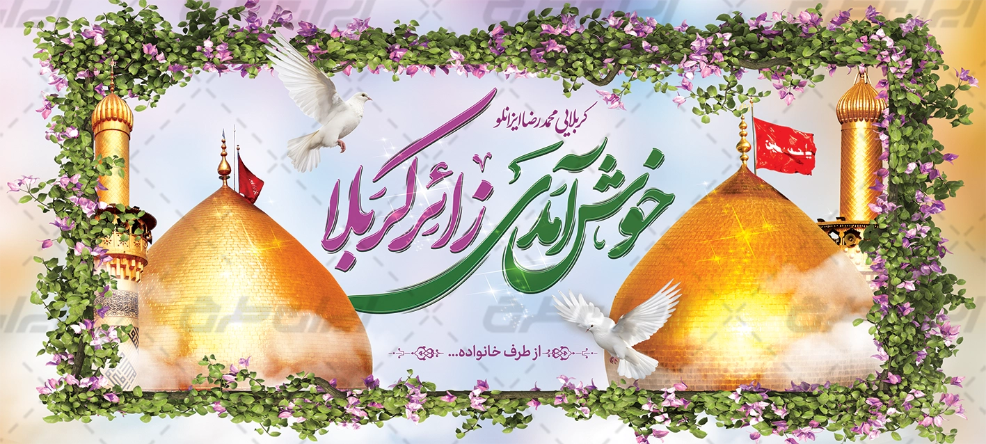 بنر خیر مقدم , بنر , طرح لایه باز , بنر زیارت کربلا , طرح بنر کربلا , گنبد امام حسین , بنر کربلا بنر زیارت عتبات عالیات , بنر بازگشت از کربلا , بنر لایه باز زیارت کربلا , بنر خیر مقدم کربلا , بنر لایه باز خیر مقدم , بنر کربلا , بنر لایه باز , بنر خوش آمد گویی ,